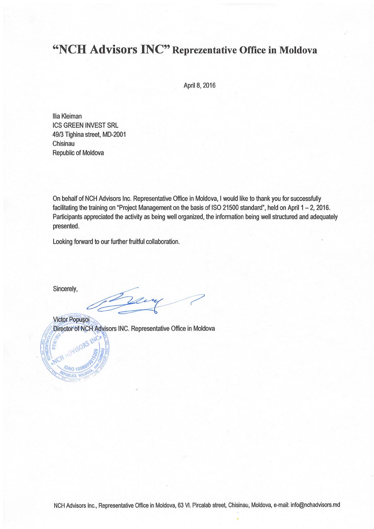 В разные годы консультационная, проектная и образовательная деятельность осуществлялась для частных компаний, государственных структур и международных организаций. Форматы взаимодействия включали управленческий аудит, разработку стратегий, внедрение процессного и проектного управления, а также обучение управленческих команд. География проектов охватывает Европу и страны Восточного партнёрства, а отраслевой спектр — от промышленности и логистики до IT, здравоохранения и публичного сектора.