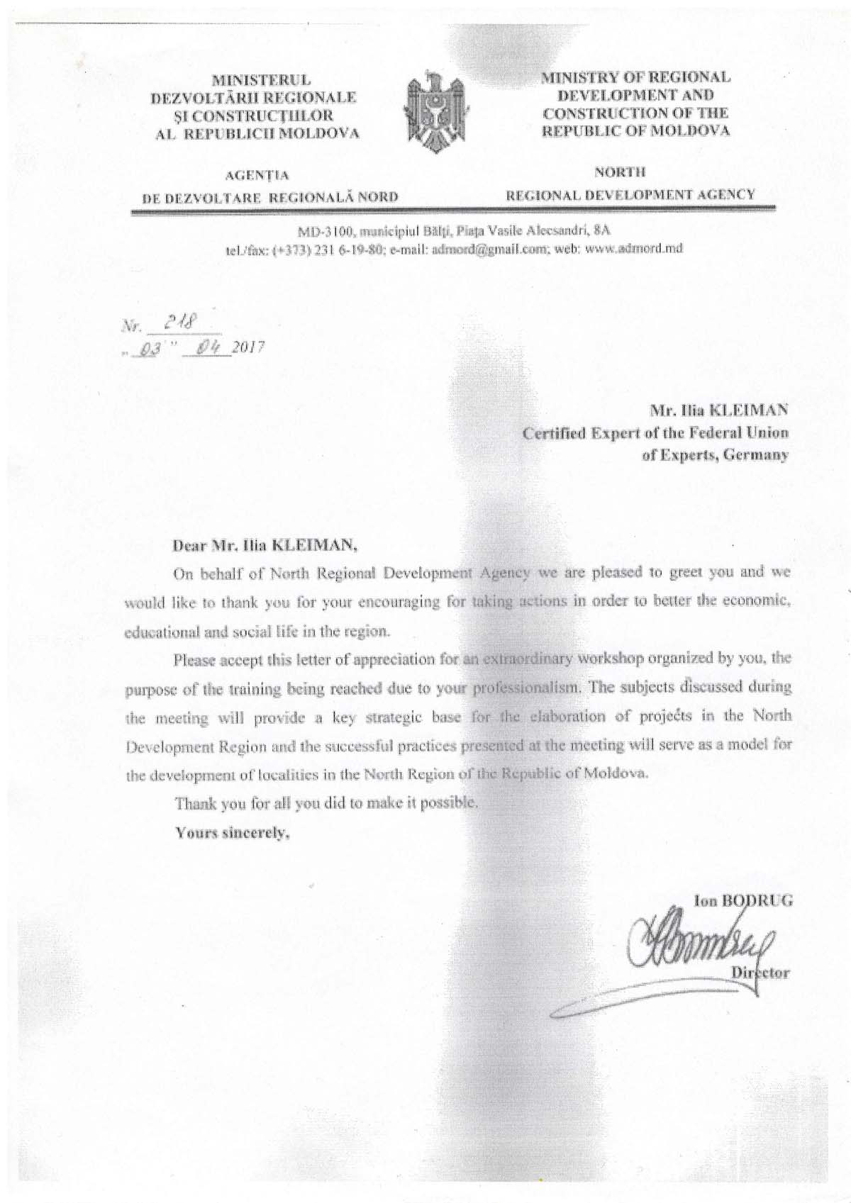MINISTRY OF REGIONAL DEVELOPMENT AND CONSTRUCTION OF THE REPUBLIC OF MOLDOVA