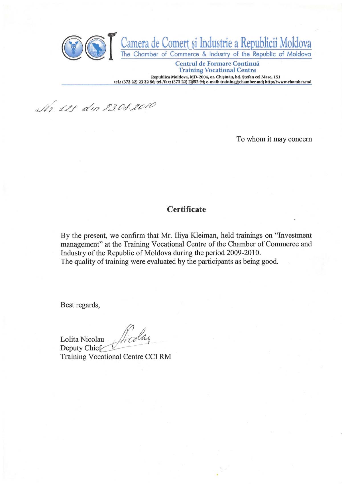 CAMERA DE COMERȚ ȘI INDUSTRIE A REPUBLICII MOLDOVA