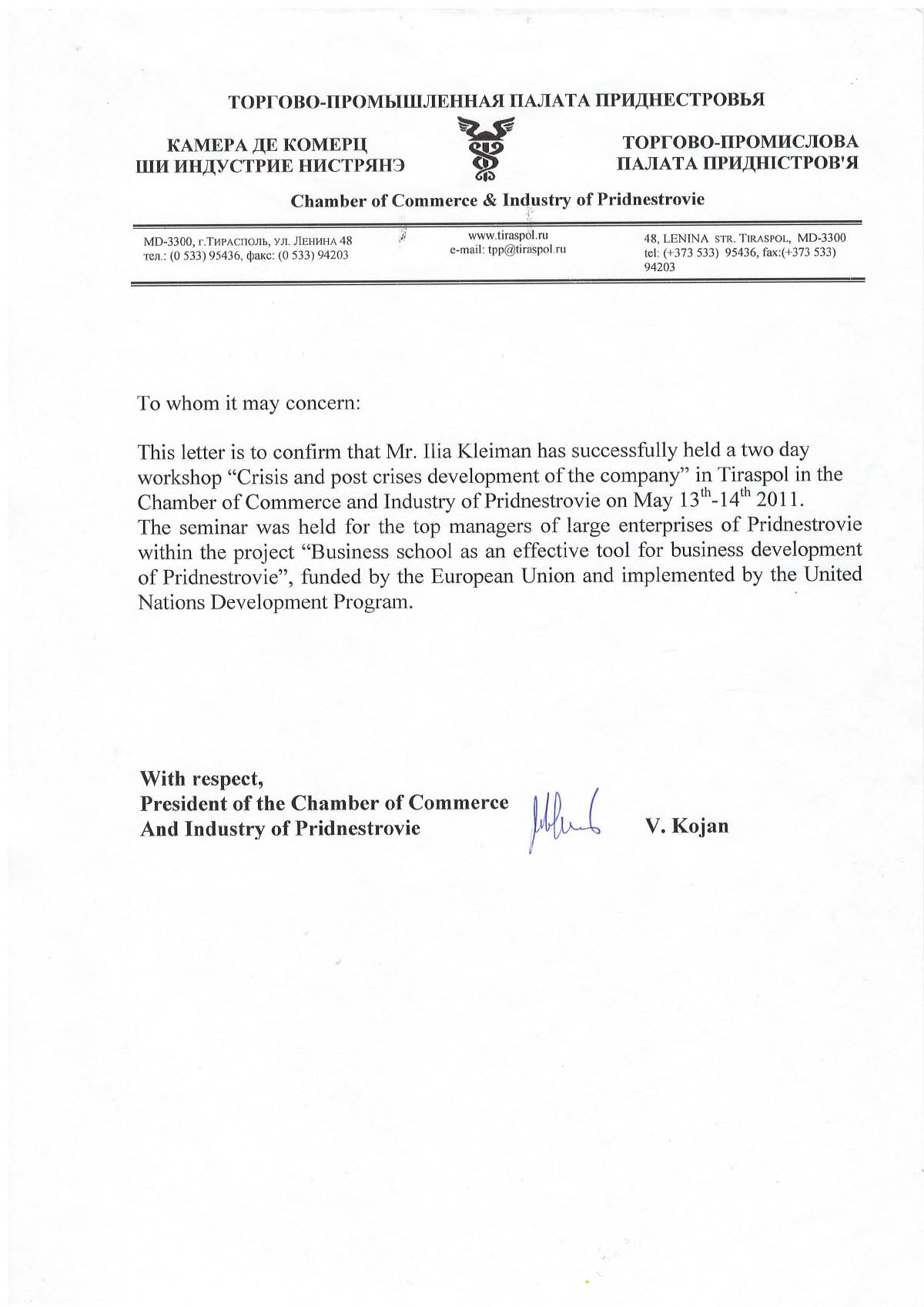 ТОРГОВО-ПРОМЫШЛЕННАЯ ПАЛАТА ПРИДНЕСТРОВЬЯ