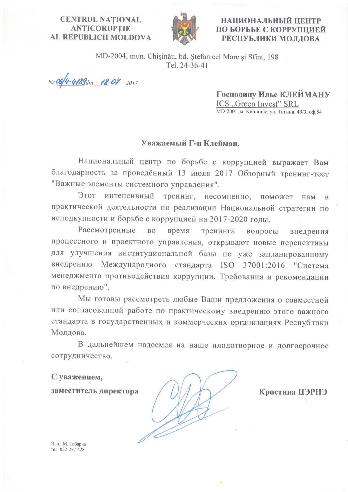 НАЦИОНАЛЬНЫЙ ЦЕНТР ПО БОРЬБЕ С КОРРУПЦИЕЙ РЕСПУБЛИКИ МОЛДОВА