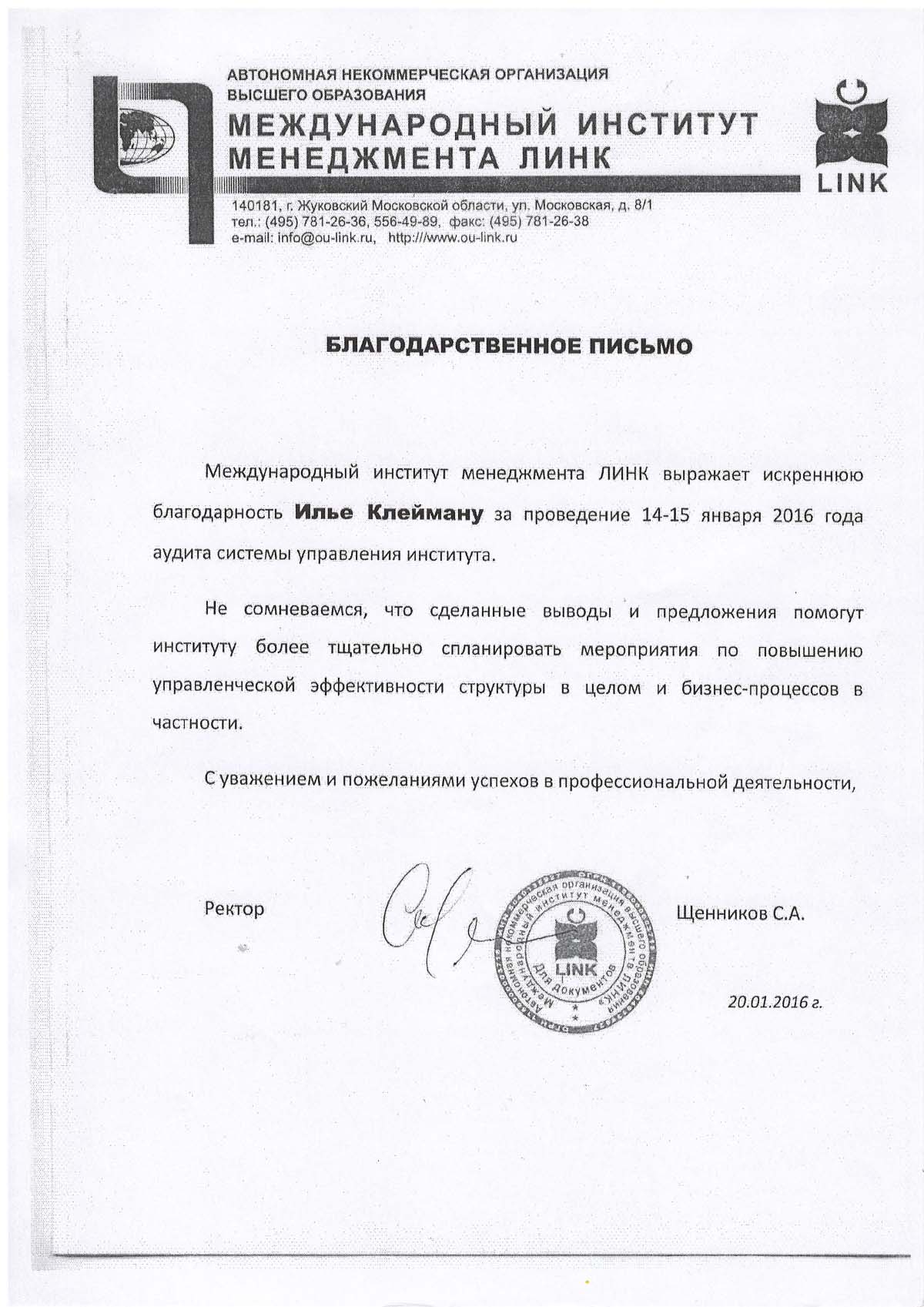 МЕЖДУНАРОДНЫЙ ИНСТИТУТ МЕНЕДЖМЕНТА ЛИНК